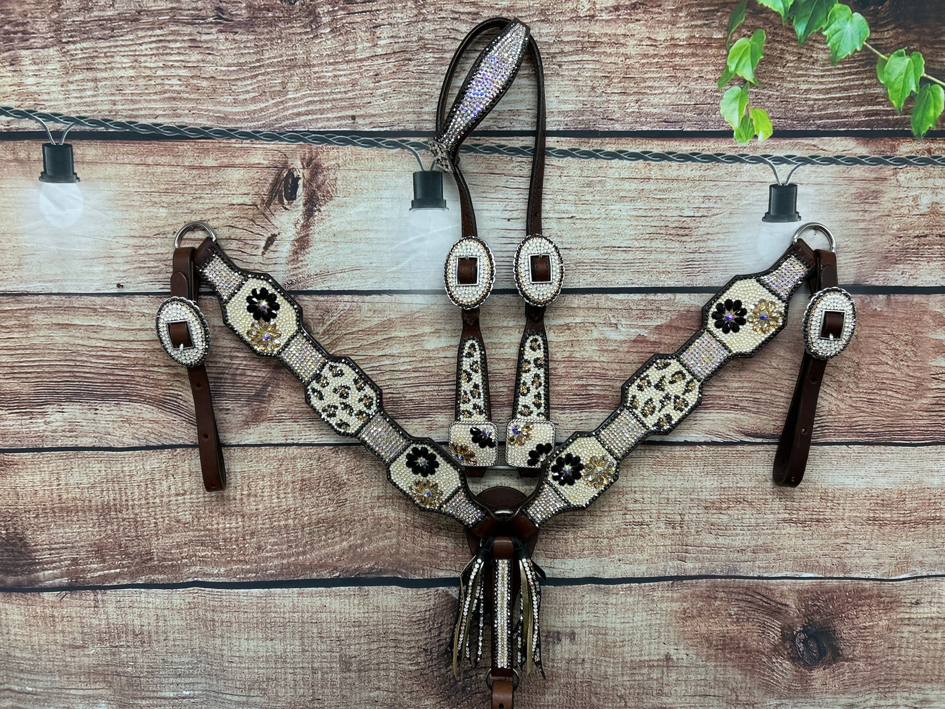 This set is dripping with crystals and design!! It has a LOT of real estate for genuine Swarovski crystals and will be sure to stop people (and horses!) in their tracks! Comes with dust bag