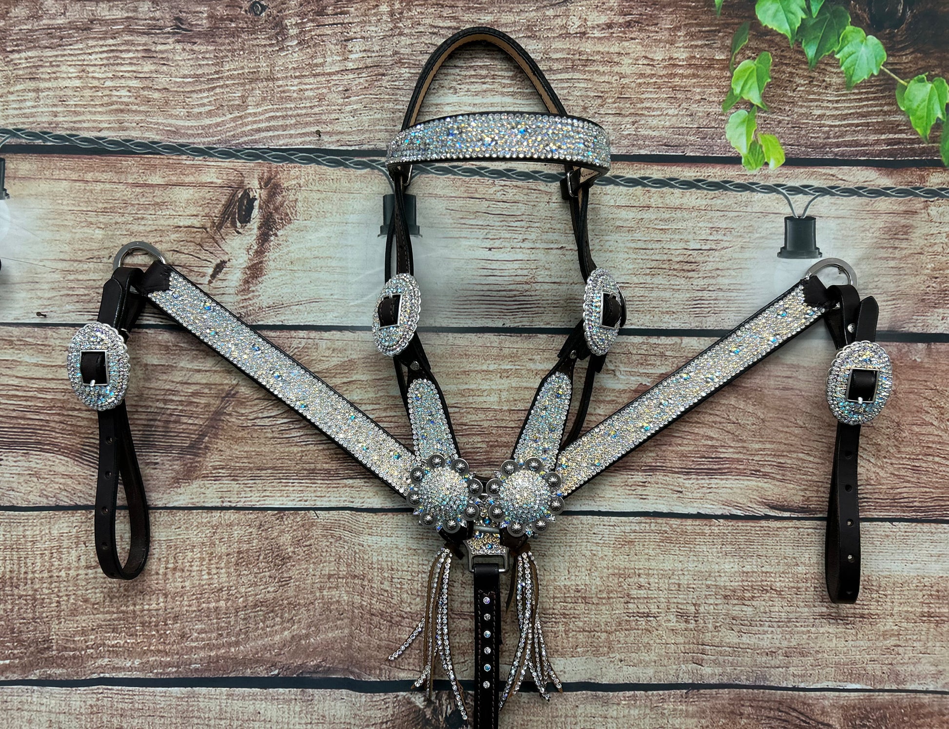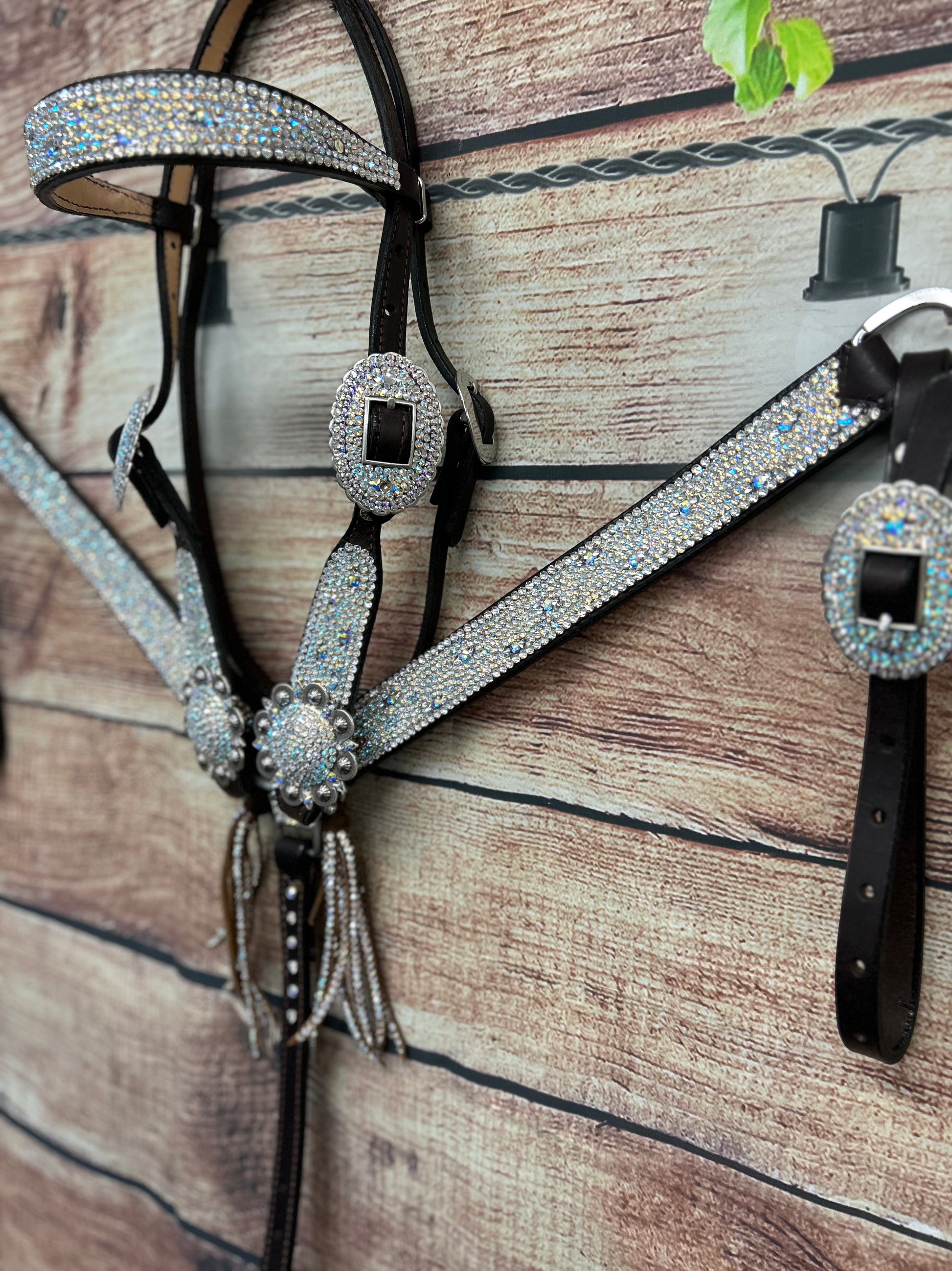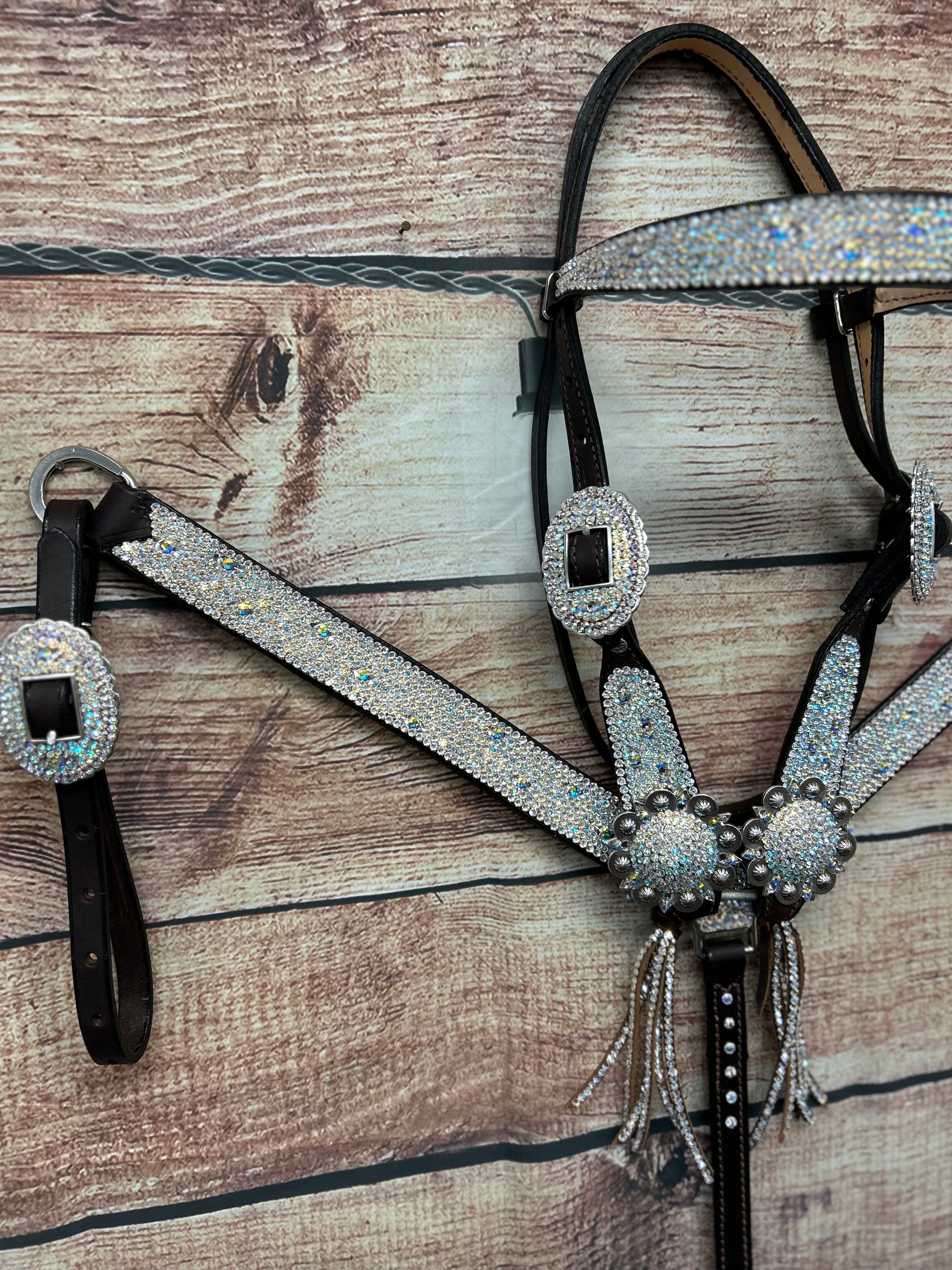 Who doesn’t love an iced out set that just goes with every color!? This set has fun little turtle shell shape crystals and a browband headstall.